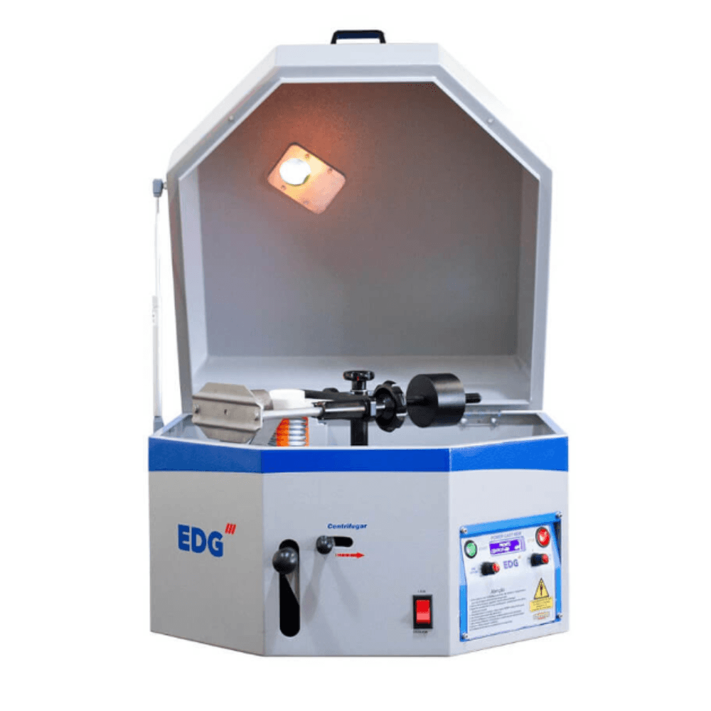 Centrífuga para fundição de metais com sistema de aquecimento por indução.