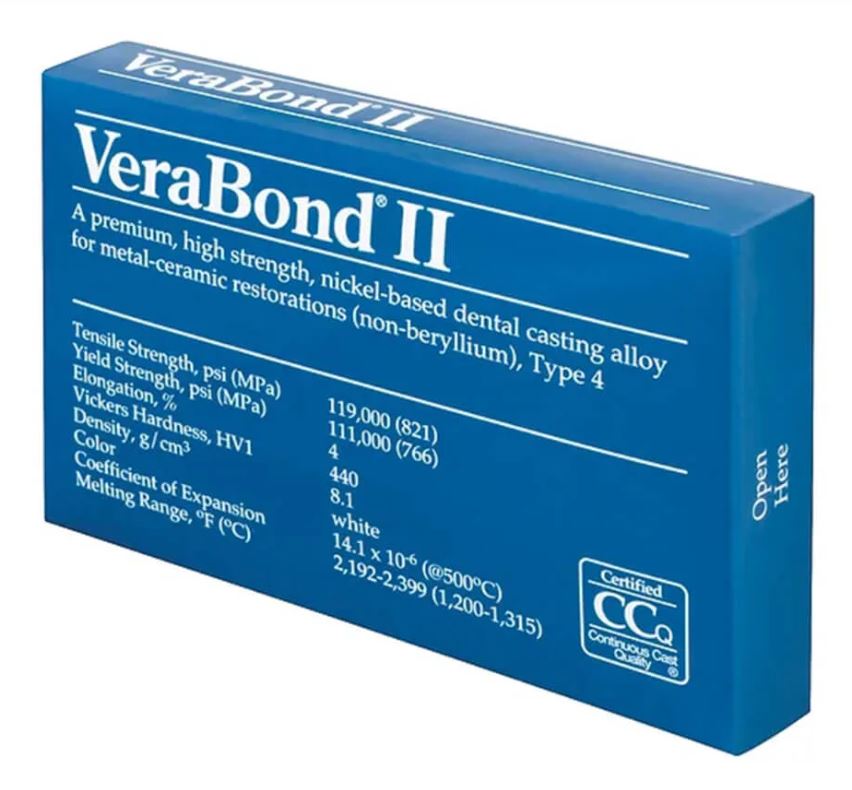 - VeraBond II confere benefícios de formulação únicos graças ao Nióbio para uma menor oxidação, adesão de porcelana confiável e uma fluidez incrementada durante a fundição.