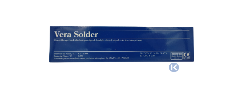 Solda de alta fusão Premium para níquel baseada em ligas metálicas. A solda é enriquecida em Boro para proporcionar maior fluidez e performance. Usada para reparos e soldagem de estruturas e copings à base de Níquel-Cromo. Esta Solda é compatível com aplicações PFm e não-PFm. Utilize também do Fluxo VERA FLUX para obter os melhores resultados.